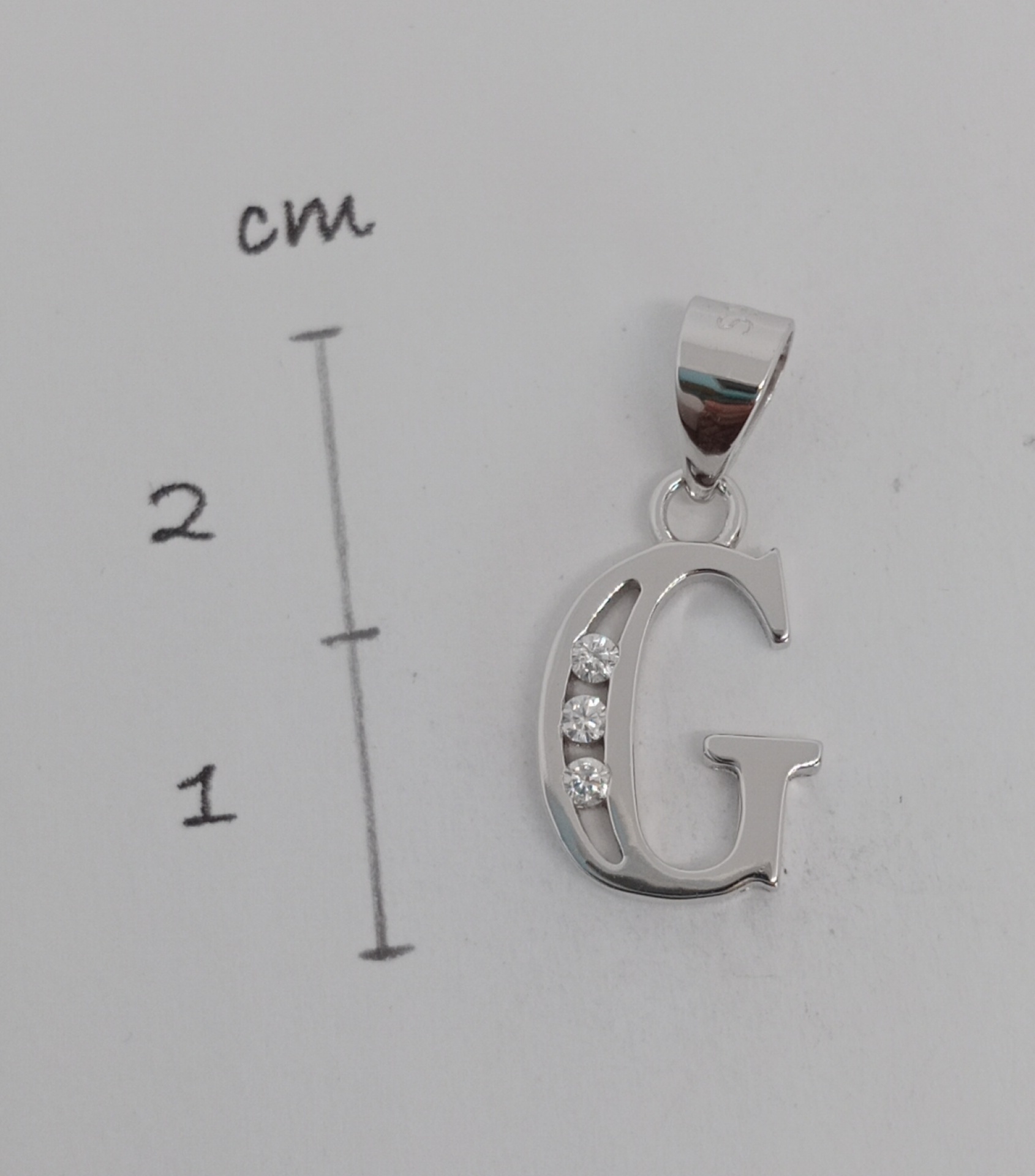 Přívěsek ze stříbra ryzosti 925/1000 písmeno "G" s kamínky