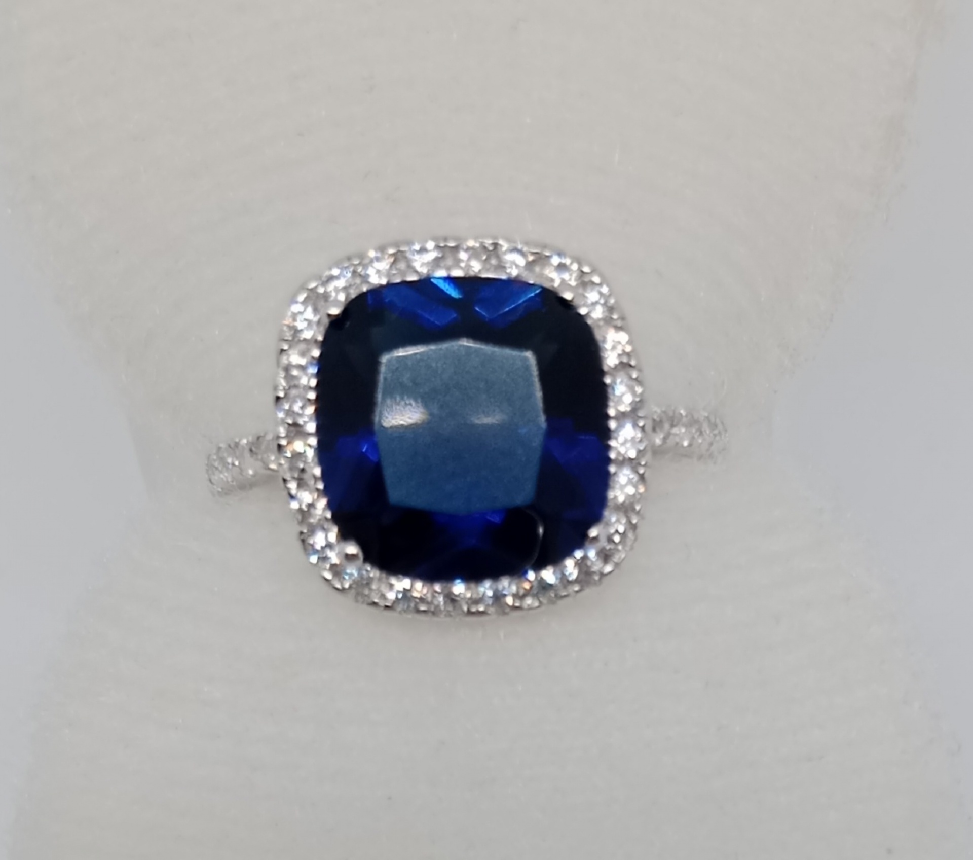 Prsten ze stříbra ryzosti 925/1000 s kamínky a modrým kamínkem